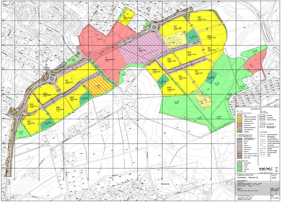 Atlanteren-prosjektet omfattes av områdeplan 2425, vedtatt i 2015 (se vedlagt plankart). Totalt sett skal det bygges ca. 880 boliger. Området skal bebygges med forskjellige boligtyper i både småhussegmentet og leilighetsblokk på opp til 5 etasjer. Punkthus tillates i 6 etasjer for inntil 10% av bebyggelsen.