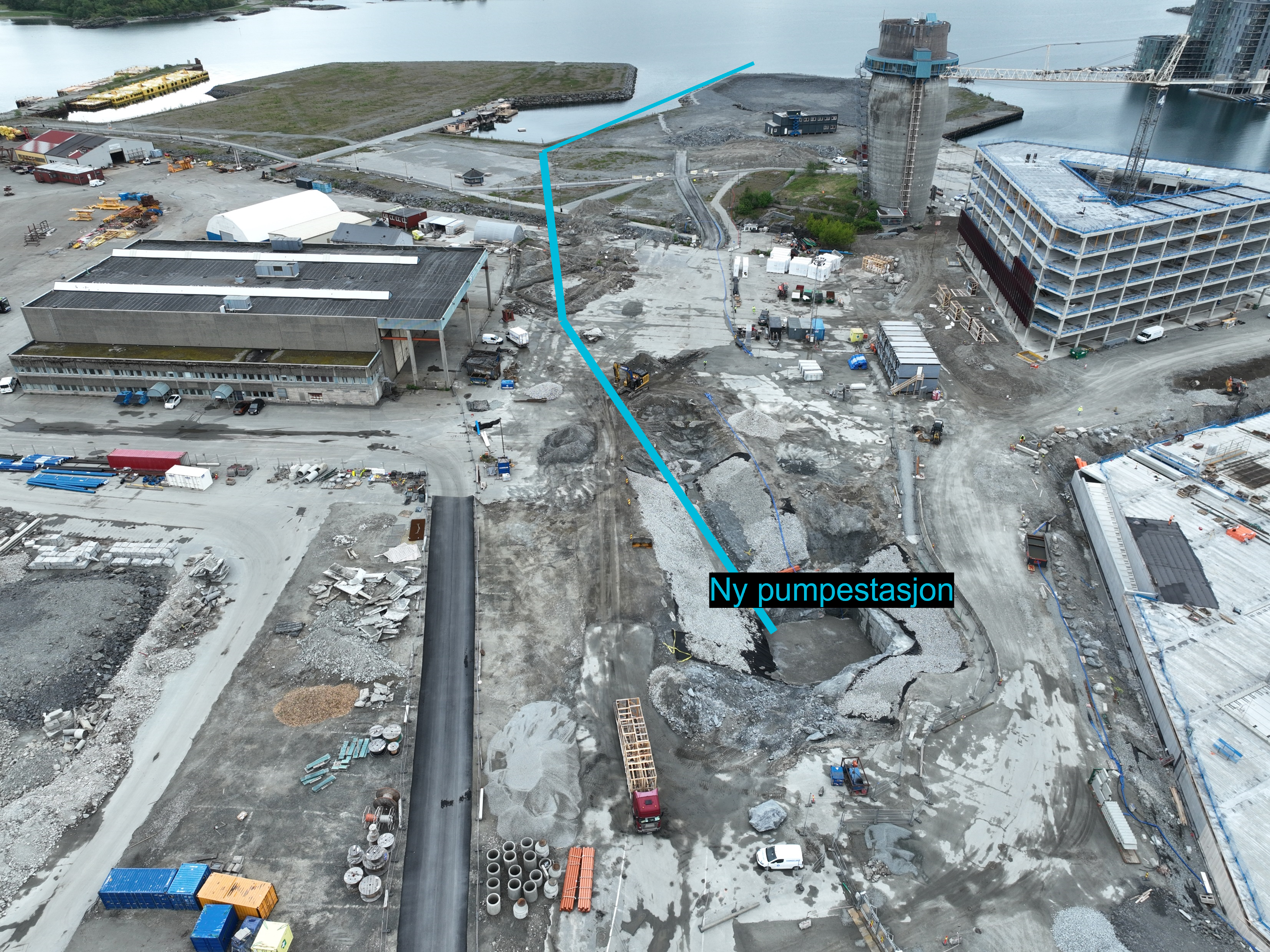 Etappen, som utgjorde ny pumpestasjon og legging av ledninger fra cirka midt i utbyggingsområdet og ut i sjø, ble ferdigstilt i august 2024.